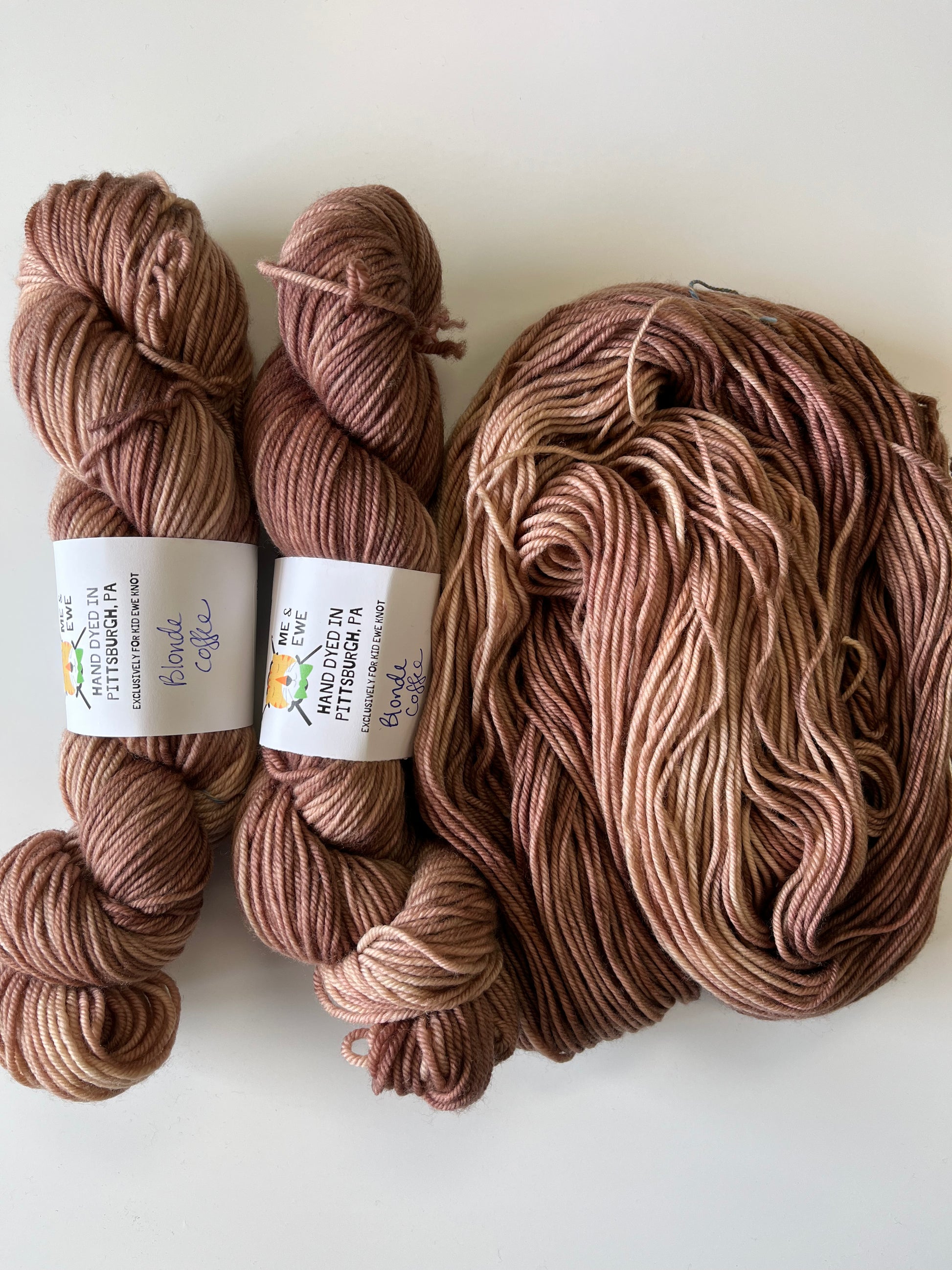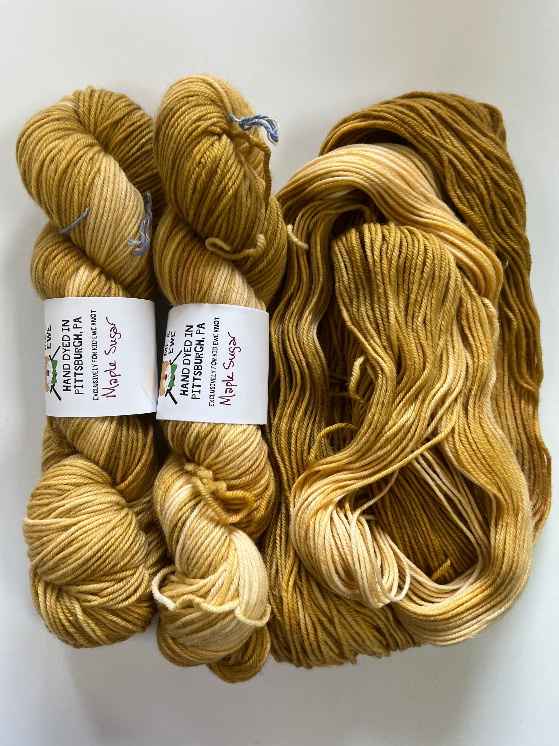 Hand-dyed in small batches in Pittsburgh, PA exclusively for Kid Ewe Knot.